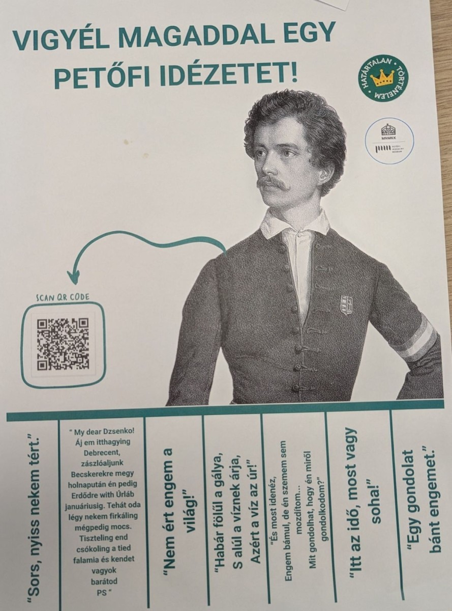 A Határtalan történelem online iskola és a Petőfi Irodalmi Múzeum közös projektjeként jött létre A gyerekek letépnek egy idézetet, elolvassák és megismerik Petőfit és az 1848-as forradalmat a feladatokon keresztül.